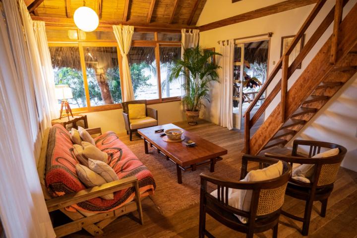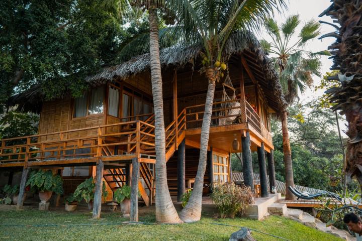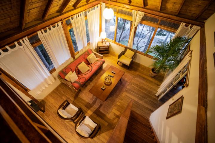 LA CASA PRINCIPAL se encuentra en el nivel de la playa y tiene capacidad para 7 personas. Consta de tres niveles,todos con vista al mar y un jardín con área de parrilla.