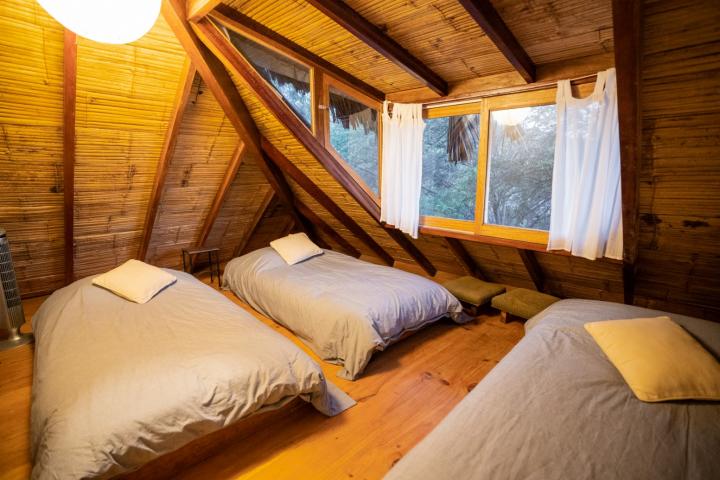 El tercer nivel es un altillo con tres camas de 1 1⁄2 plaza.