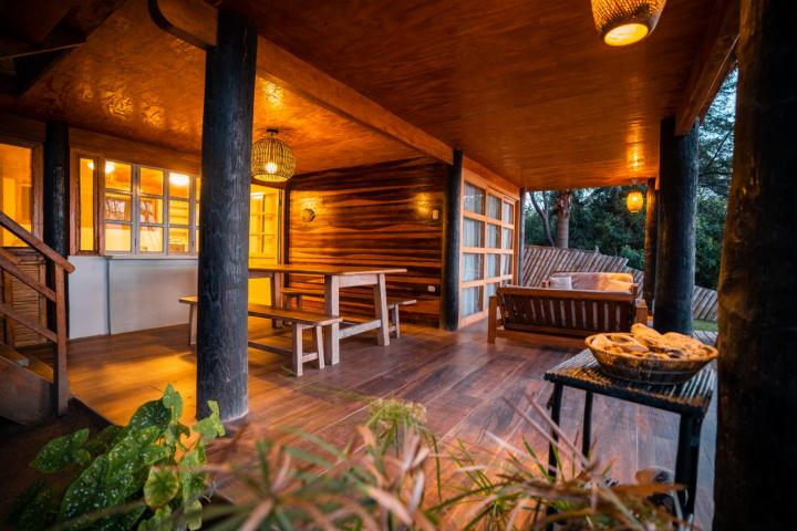En el primer nivel está la cocina completamente equipada,un comedor abierto,terraza y un dormitorio con dos camas y baño propio.
